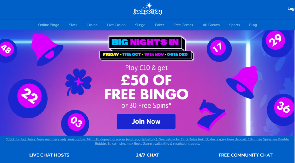 Jackpotjoy | Deposit £10, Play with £40 | Free Bingo Rooms, Cashback | Bingo Promotions, Loyalty Club |